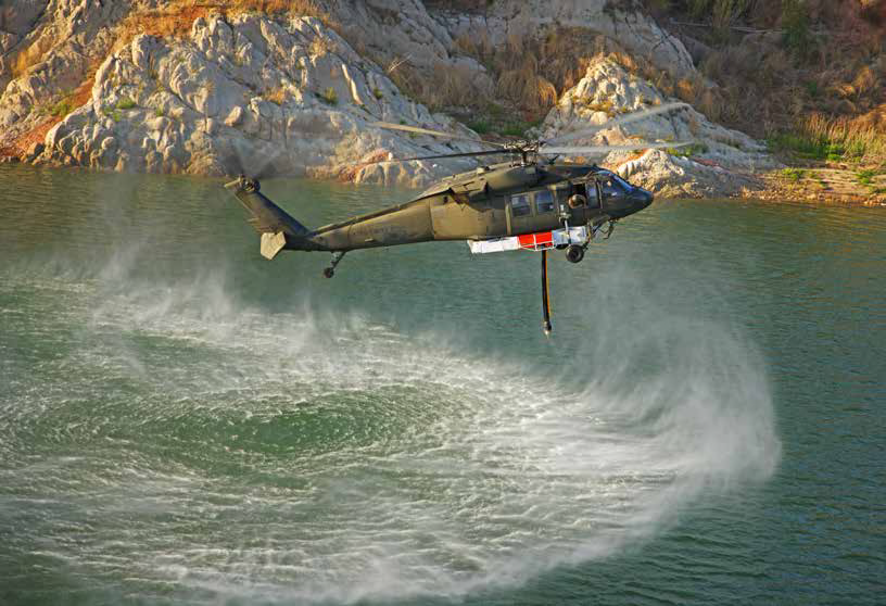 ユナイテッド・ロータークラフトの最も目覚ましい実績の一つに、シコルスキーとの独占的パートナーシップにより開発されたファイアホークが挙げられます。S-70ブラック・ホークをベースとするファイアホークは、1,000ガロンの胴体下タンク、引き込み式シュノーケル、そしてモジュール式のキャビン構成を統合しており、空中消火、MEDEVAC、捜索救難、部隊輸送、あるいは汎用輸送といった異なる任務間を迅速に転換することができます。